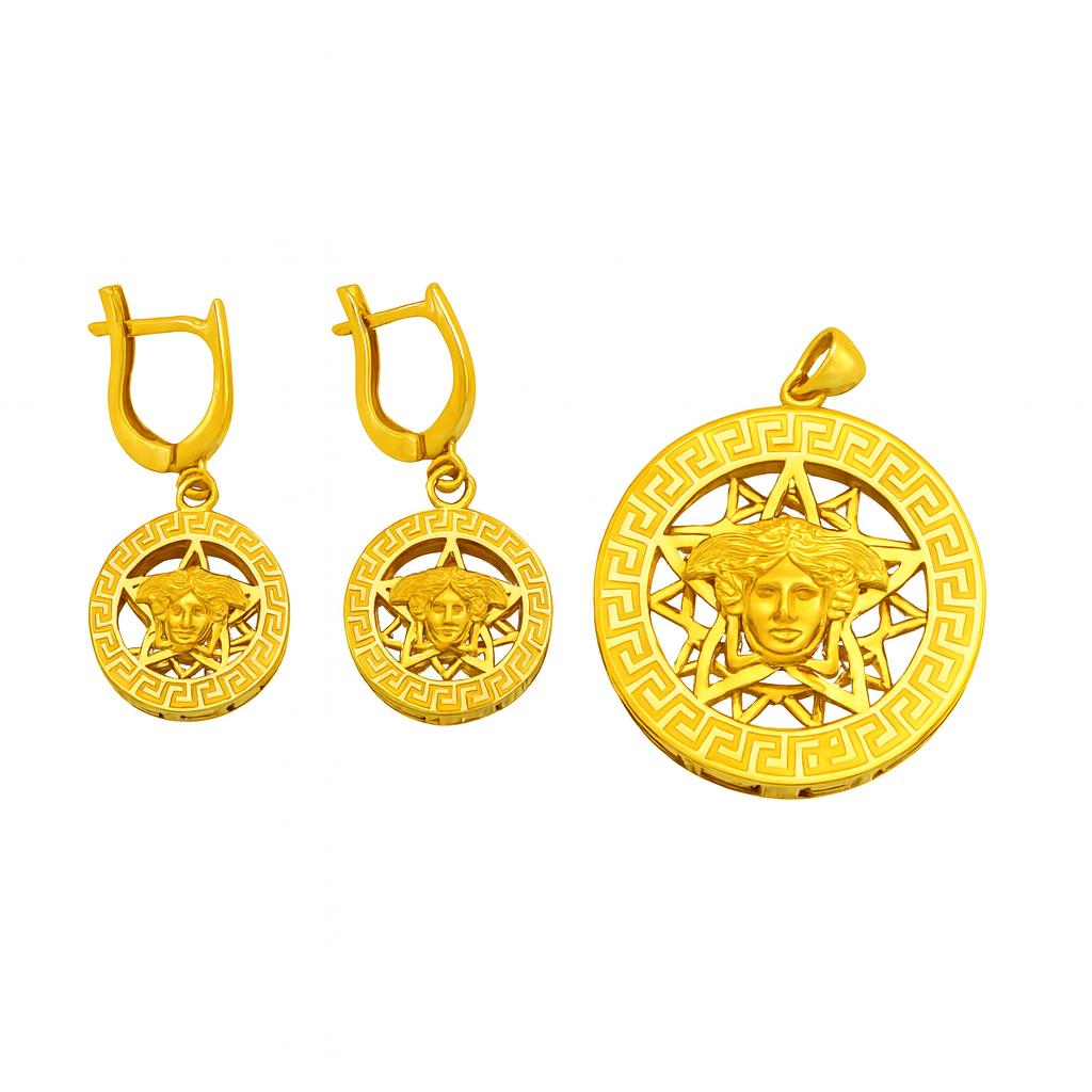 **نیم ست مدنیت** این نیم ست خاص و شیک از طلای زرد، ترکیبی بینظیر از زیورآلات مدرن و آرت دکو را ارائه میدهد. طراحی جذاب این مجموعه شامل گوشوارهها و گردنبند با اشکال دایرهای و نقشهای برجسته از شخصیتهای افسانهای است که زیبایی و اصالت را به نمایش میگذارد. ابعاد آن به گونهای است که در عین ظرافت، جلوهای خاص به خود میگیرد و برای هر نوع پوششی مناسب است. با انتخاب این نیم ست، به سادگی بر زیبایی و استایل خود افزوده و تحسین اطرافیان را جلب خواهید کرد.