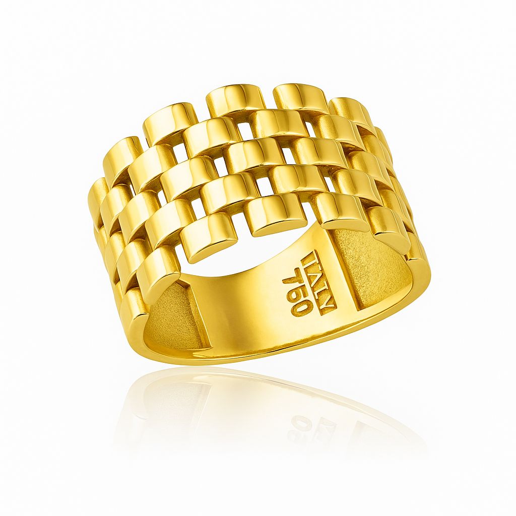 **عنوان: انگشتر بافتنی خاص** این انگشتر زیبا و خاص، با طراحی بافتنی منحصر به فرد خود، جلوهای ویژه به دستان شما میبخشد. ساخته شده از طلای زرد ۷۵۰، وزن تقریبی آن ۲.۱۶۰ گرم بوده و به طور دقیق و با کیفیت عالی طراحی شده است. این انگشتر دارای ظاهری عریض و مدرن است که به آسانی با هر استایل روزمره یا رسمی هماهنگ میشود. بافت متقارن و براق آن، جلوهای خاص و جذاب به این زیورآلات میدهد، و انتخابی ایده آل برای کسانی است که به دنبال ظاهری شیک و متفاوت هستند.