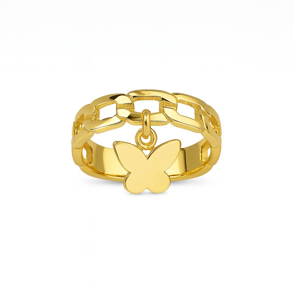 **انگشتر مینیمال آویز پروانه** این انگشتر مینیمال از طلای زرد با طراحی مدرن و خاص، جلوهای بینظیر برای همه استایلها به ارمغان میآورد. با وزن تقریبی ۲.۹۰۰ گرم، این قطعه با جزئیات ظریف و آویز پروانهای که به زیبایی در وسط قرار دارد، توجه همگان را به خود جلب میکند. طرح زنجیری این انگشتر، نمادی از زیبایی و هماهنگی را تداعی میکند و آن را به یک انتخاب عالی برای دختران و زنان شیکپسند تبدیل میکند. انتخاب این انگشتر نهتنها ظرافت بینظیری دارد، بلکه میتواند به عنوان یکی از جواهرات خاص در مجموعه شما جای گیرد. این یکی از بهترین گزینهها برای افزودن به کمد جواهرات شماست!