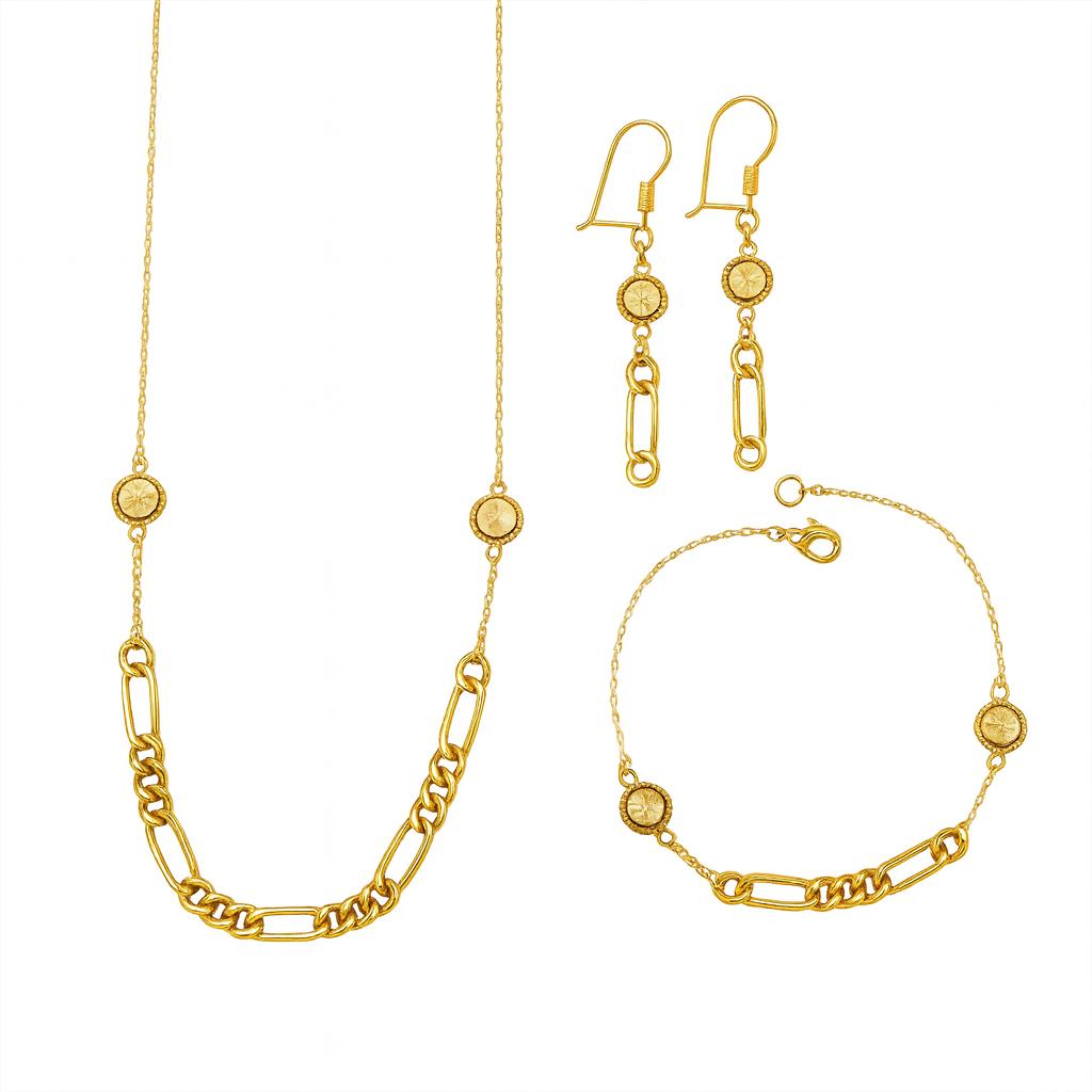 **سرویس نیم کارتیه طلایی** این سرویس زیبا و شیک از جنس طلای زرد، جلوهای خاص و مدرن به استایل شما میبخشد. شامل یک گردنبند، دستبند و گوشواره، این مجموعه با طراحی ساده و هنرمندانه خود، بهترین انتخاب برای استفاده روزمره یا مراسم ویژه است. استخراج جزئیات با دقت بالا، از جمله زنجیرهای ظریف و قفلهای ایمن، باعث میشود که این سرویس از نظر کیفیت و زیبایی در سطح بالایی قرار گیرد. وزنی معادل 6.380 گرم، این قطعه زیورآلات در عین سبکی، احساس راحتی و شیکی را به شما هدیه میدهد. انتخابی ایدهآل برای افرادی که به دنبال زیورآلات خاص و بینظیر هستند.