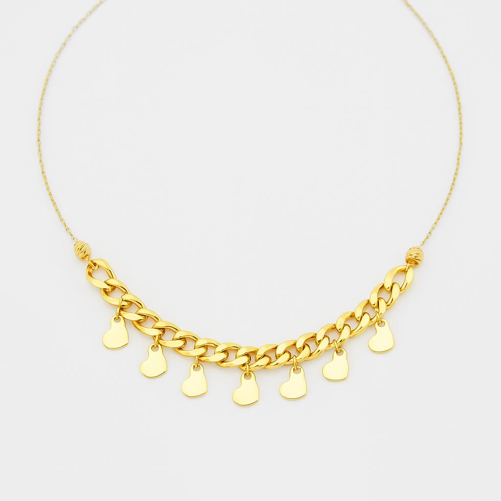 **گردنبند قلبی شیک** این گردنبند زیبا و منحصر به فرد از طلای زرد با طراحی دلربا، جلوهای خاص به هر استایلی میبخشد. آویزهای قلبی شکل بر روی زنجیری منحصر به فرد قرار گرفتهاند که زیبایی طرح را دوچندان کرده است. وزن تقریباً 2.300 گرم این گردنبند، آن را به یک گزینه ایدهآل برای استفاده روزمره و مناسبتهای خاص تبدیل میکند. با شکلی ساده و در عین حال شیک، این گردنبند گزینهای عالی برای علاقهمندان به زیورآلات زنانه و خاص است.