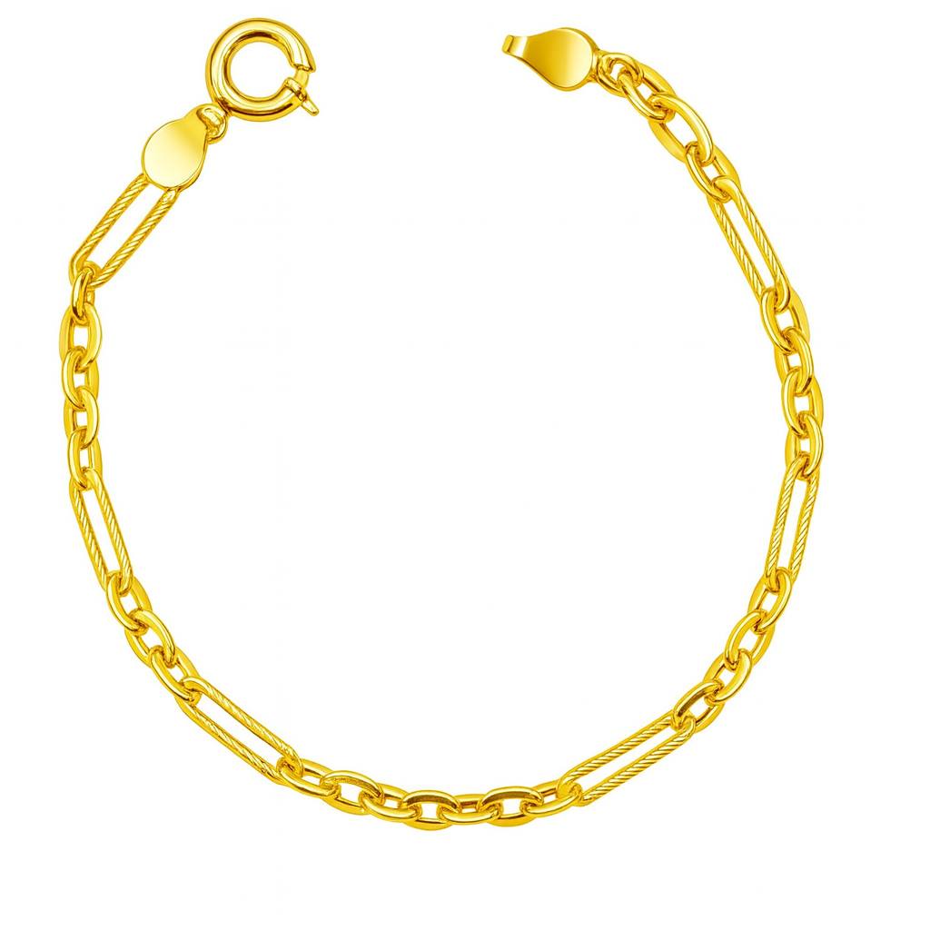 ### دستبند زنجیری شیک این دستبند زیبا و مدرن از طلای زرد با وزن تقریبی 3.570 گرم ساخته شده است و در آن طراحی بینظیری را مشاهده میکنید. ترکیب زنجیرهای صاف و پیچدار، حس خاص و لوکسی را منتقل میکند که قادر است هر استایلی را جذابتر کند. این دستبند با ابعاد مناسب و ظرافت خود، برای استفاده روزمره و همچنین مناسبتهای خاص عالی است و میتواند به عنوان یک هدیه منحصربهفرد نیز در نظر گرفته شود. با خرید این دستبند، ظاهری شیک و خاص را برای خود به ارمغان بیاورید.