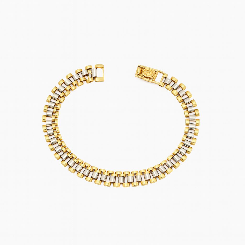 ### دستبند لوکس این دستبند زیبا با طراحی منحصر به فرد خود، قطعاً انتخابی شیک و بینظیر برای هر خانمی خواهد بود. این قطعه ترکیبی از طلای زرد و نقرهای است که به آن جلوهای خاص و مدرن بخشیده است. ابعاد آن بهگونهای است که نه خیلی پهن و نه خیلی ظریف میباشد و مناسب برای استفاده روزانه و همچنین مراسمهای رسمی است. جنسهی باکیفیت و کاردستی عالی این دستبند، دوام و زیبایی آن را تضمین میکند. با این دستبند، زیبایی و ظرافت را به استایل خود بیفزایید.