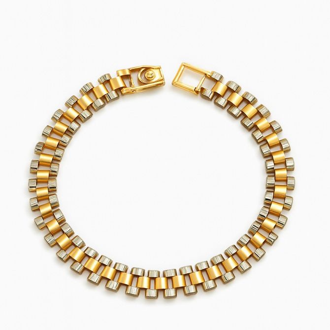 ### دستبند طلایی شیک این دستبند تماشایی با طراحی مدرن و جذاب، از طلای زرد با ظاهری درخشان و خاص ساخته شده است. ترکیب الگوهای درهمتنیده و روکشهای نقرهای در این دستبند، جلوهای زیبا و منحصر به فرد به آن بخشیده و مناسب برای استفاده در مراسمهای رسمی و روزمره است. با وزن تقریبی 6.870 گرم و عرض متناسب، این دستبند نه تنها سبک و راحت است، بلکه به عنوان یک اکسسوری شیک، جلوهای خاص به دستان شما میبخشد. با این دستبند، در هر جمعی خود را متمایز کنید و زیبایی خود را دوچندان نمایید.