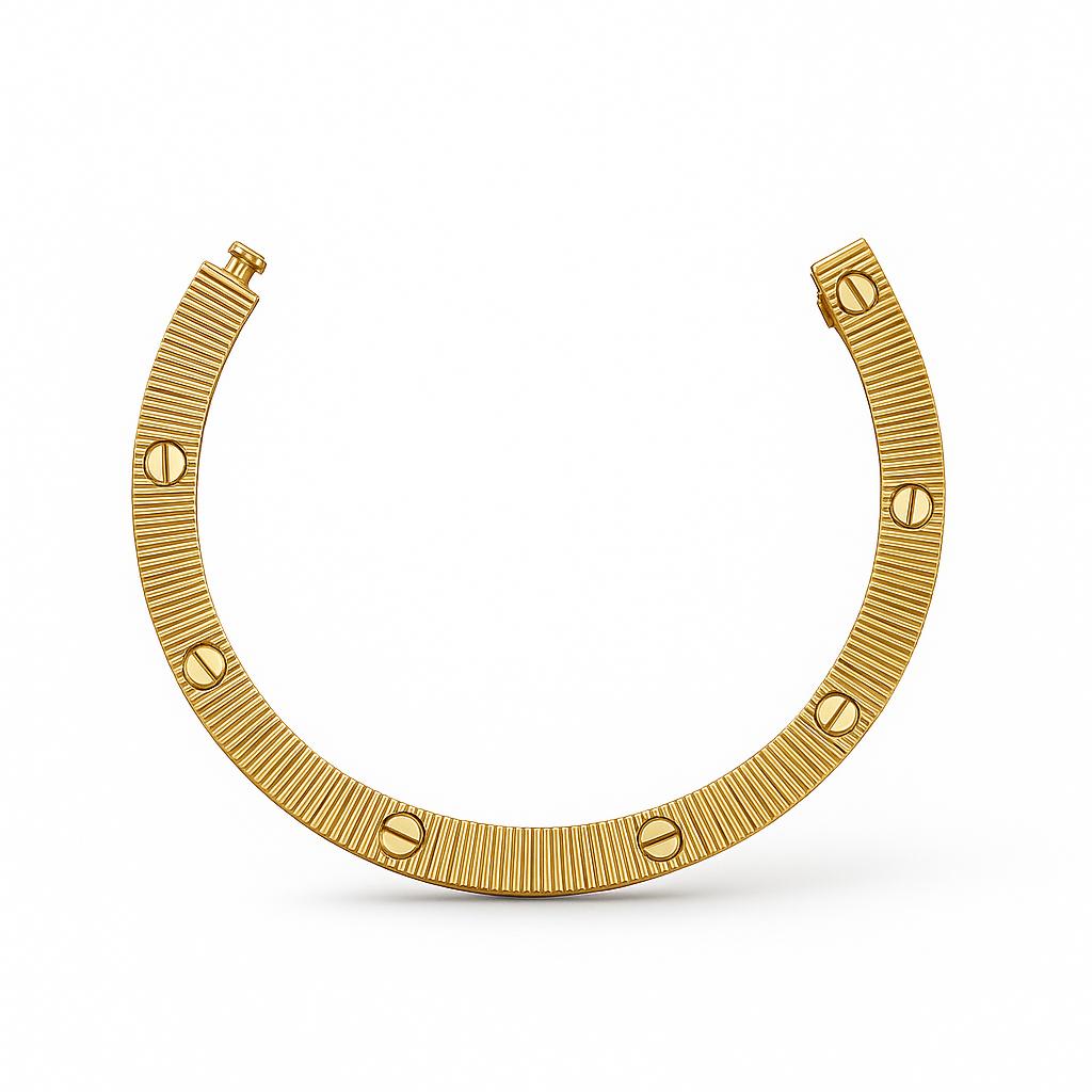 **دستبند لاو کارتیر** --- این دستبند زیبا از طلای زرد با وزن تقریبی 10.520 گرم و طراحی خاص خود، گزینهای عالی برای خانمهای شیک و مد روز است. طراحی مدرن و زبانزد آن با جزئیاتی مثل خطوط عمودی و قفلهای منحصر به فرد، جذابیت خاصی به آن بخشیده است. این دستبند به دلیل ساختار پهن و محکم خود، در عین حال ظرافت را نیز حفظ کرده و به سادگی با سایر زیورآلات ترکیب میشود. با توجه به کیفیت و طراحی خاص این قطعه، میتواند هدیهای ماندگار و خاص برای عزیزان باشد.