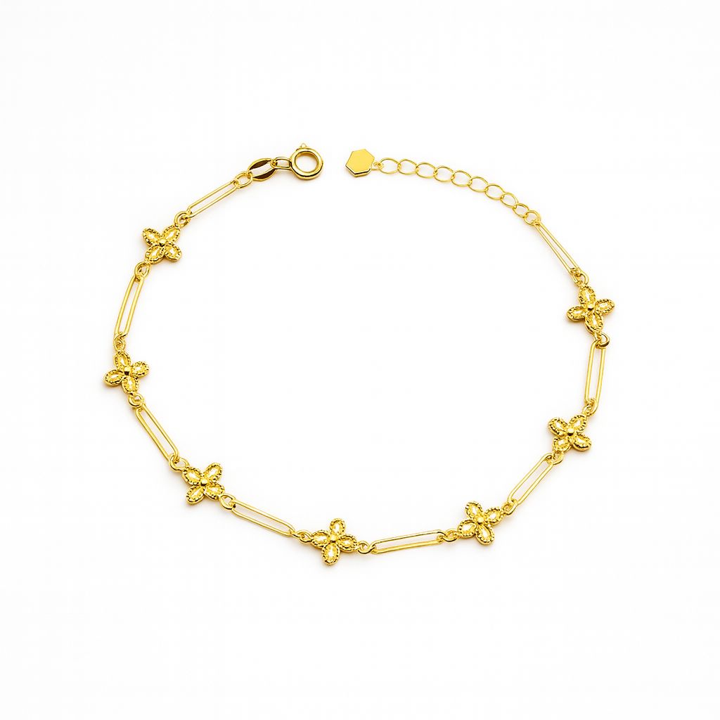 ### دستبند گلدار طلایی دستبند ونکلیف اکسترا با وزن تقریبی 0.690 گرم، زیورآلاتی است که زیبایی و ظرافت را به هم میآمیزد. این دستبند از طلاى زرد با طراحی گلهای زیبا و ظریف تشکیل شده است که شکلی شیک و مدرن را به آن میبخشد. طرح پیچشی و استفاده از لینکهای باریک میان گلها، باعث ایجاد حس سبکی و جذابیت بیشتر برای این قطعه میشود. این زیور میتواند همراه مناسبی برای هر سِت لباسی باشد و گزینهای عالی برای هدیه دادن به عزیزانتان به حساب بیاید. با این دستبند، جذابیت و شکوه را به روزهای خود اضافه کنید.