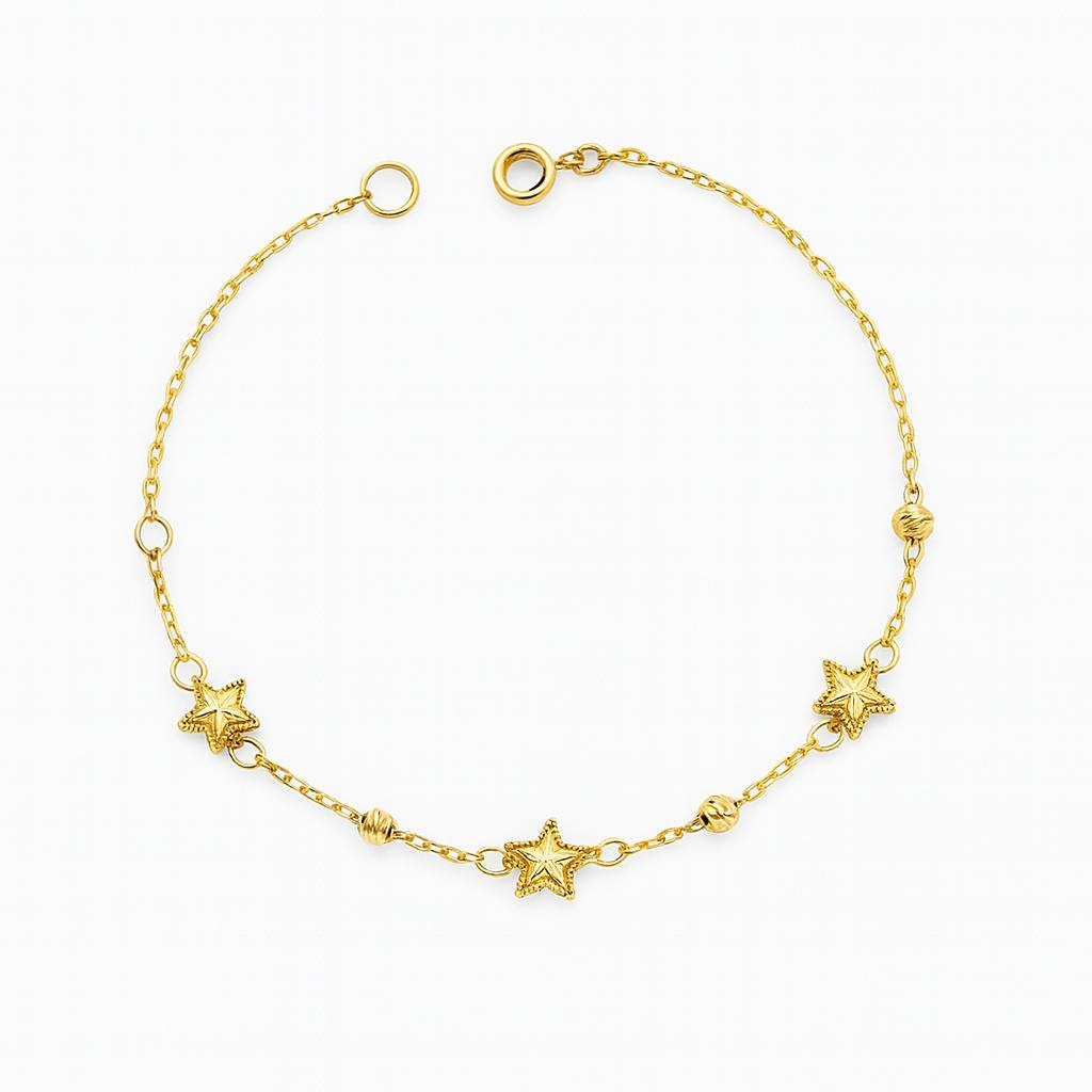 ### دستبند ستارهای درخشان این دستبند زیبا و خاص، نمادی از نجابت و ظرافت است. ساخته شده از طلای زرد با وزنی حدود 1.110 گرم، این دستبند به واسطهی طراحی منحصر به فرد خود، به شکلی ظریف و مدرن جلوهگری میکند. با شکلی زنجیری و تزئیناتی از ستارههای جلا داده شده، هر کدام بهدقت روی زنجیر قرار گرفتهاند و به جذابیت این قطعه افزودهاند. این دستبند نه تنها برای استفاده روزمره مناسب است، بلکه میتواند به عنوان یک کالای خاص در مهمانیها و مراسمها نیز به کار رود. با این دستبند، میتوانید زیبایی و سادگی را در کنار هم تجربه کنید.