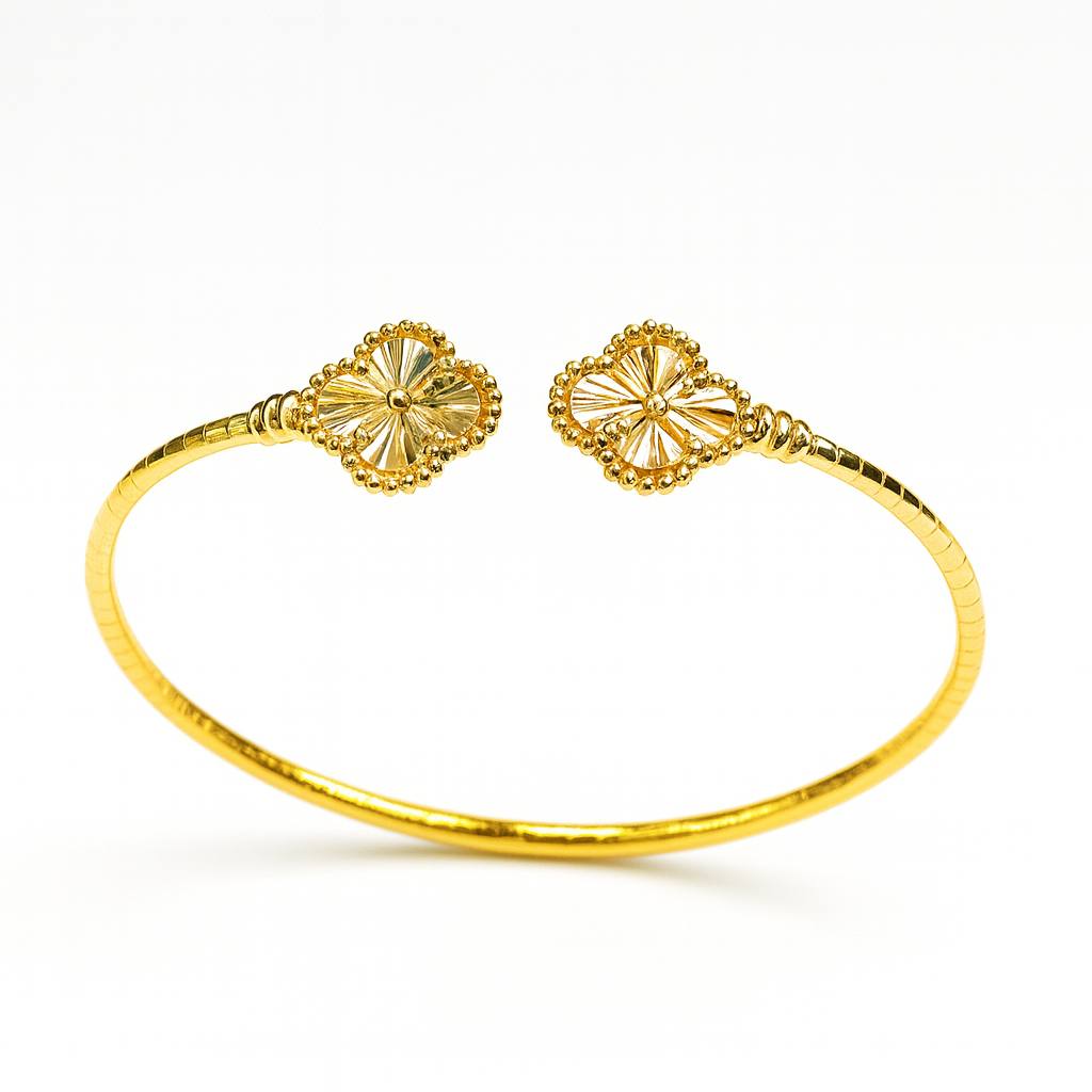 **دستبند طلای شیک ونکلیف** دستبند ونکلیف با طراحی بینظیر و جذاب خود، انتخابی خاص برای جذابیت هر استایل است. این دستبند از طلای زرد با وزن تقریبی 5.010 گرم ساخته شده و با جزئیات ظریف و بافتهای زیبا، جلوهای کلاسیک و در عین حال مدرن به دست شما میبخشد. دو سر دستبند به شکل گلهای زیبا طراحی شده که با رنگ طلایی درخشان، نمایی شیک و لوکس ایجاد میکند. این دستبند، به دلیل طراحی ظریف و سبکی خاص، به راحتی قابل استفاده روزمره و مناسب برای مناسبتهای ویژه میباشد. برای کسانی که به دنبال آینده زیورآلات طلای زنانه خاص و متفاوت هستند، این دستبند گزینهای مناسب خواهد بود.