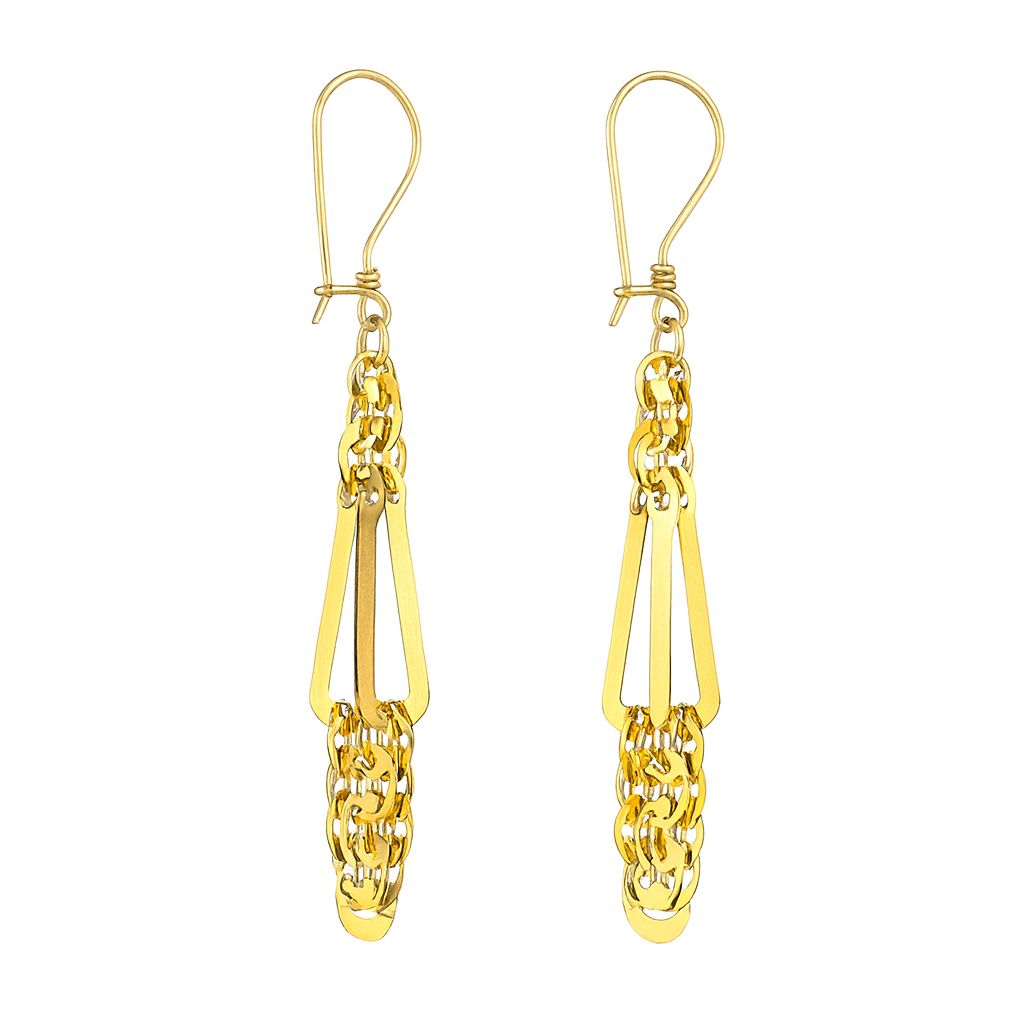 ## گوشواره پولکی شیک گوشوارههای پولکی این روزها انتخابی عالی برای زیباتر کردن هر تیپ و استایلی هستند. این گوشوارههای طلای زرد، با وزن تقریبی 1.970 گرم، طراحی مدرن و ظریفی دارند که هر خانمی را به خود جذب میکند. طول آویز آنها با اشکال جذاب و زنجیری، جلوهای خاص به صورت میدهد و میتواند با هر نوع لباسی ترکیب شود. طراحی مینیمالیستی و شیک این گوشوارهها، آنها را برای استفاده در مراسم مختلف یا به عنوان زیورآلات روزمره ایدهآل میسازد. بیشک این گوشوارهها، انتخابی خاص برای شما خواهند بود.