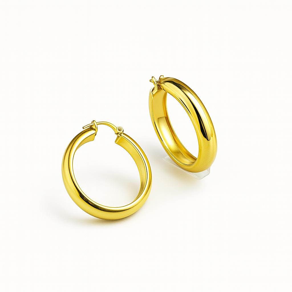 ### گوشواره حلقه طلایی گوشواره حلقه پاچ از جنس طلای زرد با وزنی تقریبی 2.760 گرم انتخابی شیک و خاص برای بانوان است. طراحی مدرن و مینیمالیستی این گوشواره، آن را به مکملی مناسب برای هر نوع استایلی تبدیل کرده است. با قطر متوسط و ظاهر درخشان خود، این گوشوارهها جلوهای بینظیر به گوشها میبخشند. بدون توجه به مناسبتی که در نظر دارید، این گوشواره اساسی برای هر مجموعه زیورآلات است و با سهولت میتوانید آن را با سایر زیورآلات ترکیب کنید.