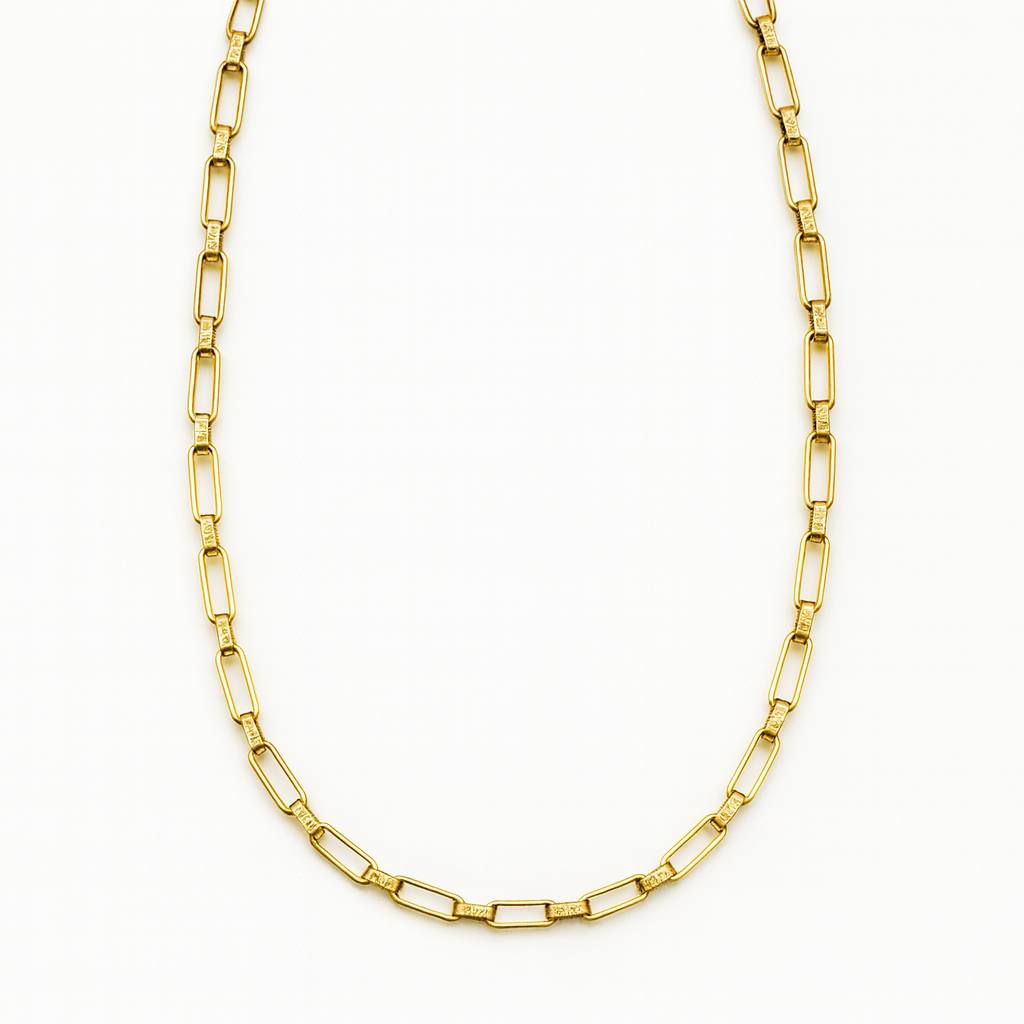**زنجیر طلای مدرن** زنجیر ورساچ با طراحی خاص و شیک، انتخابی ایدهآل برای افرادی است که به دنبال زیورآلات متمایز هستند. این زنجیر از طلای زرد با کیفیت بالا ساخته شده و دارای وزن تقریبی 4.740 گرم میباشد. طول و عرض آن به گونهای است که ظاهری ظریف و در عین حال برجسته دارد، که میتواند به سادگی زیبایی هر لباسی را تکمیل کند. طراحی ساده و مدرن این زنجیر، آن را برای استفاده روزانه و مجالس خاص مناسب میسازد. با این زنجیر، جذابیت و elegance را به کمد لباس خود اضافه کنید.