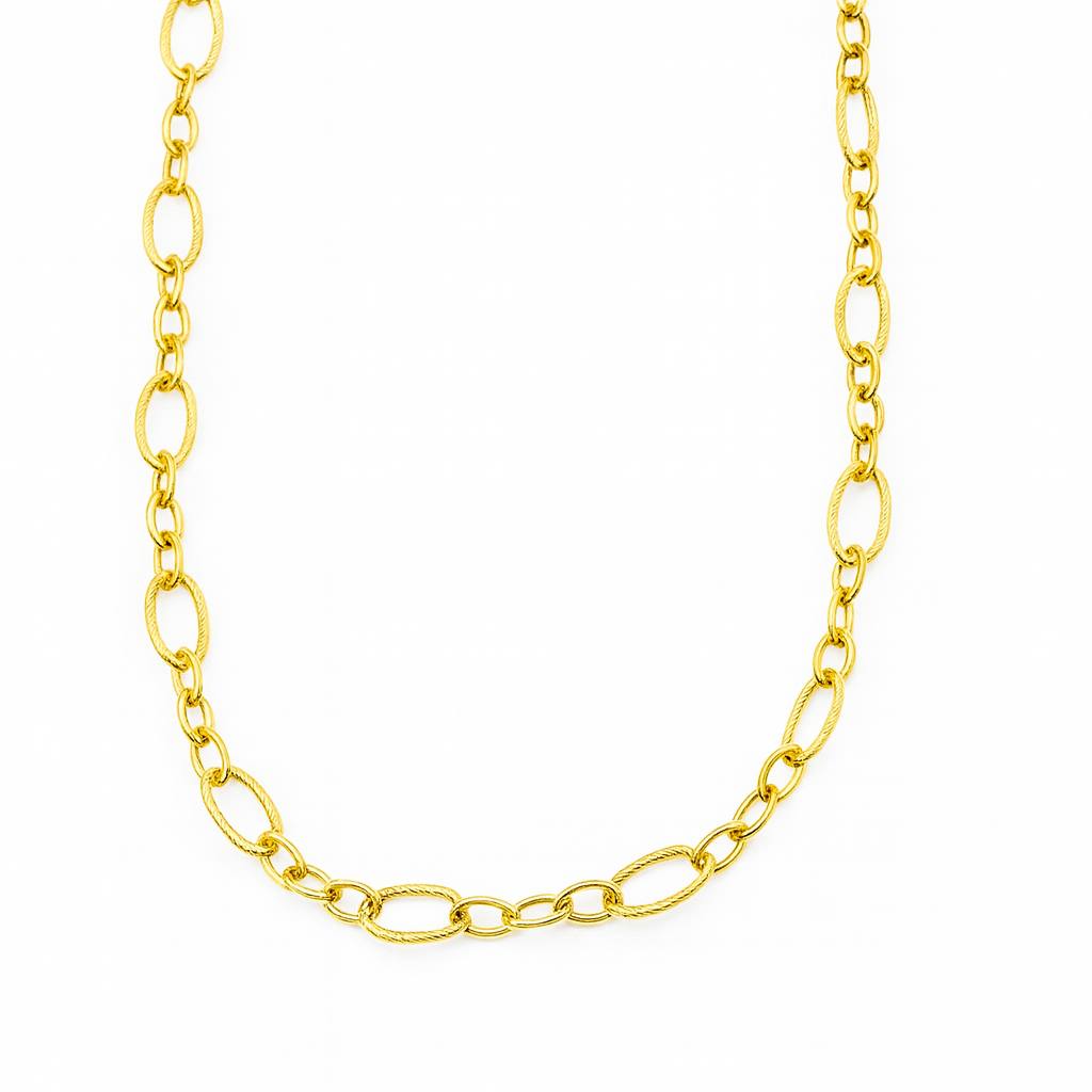 **زنجیر طلای هرمس** این زنجیر زیبا با طراحی مدرن و خاص خود، از طلای زرد با وزن تقریبی 6.840 گرم ساخته شده است. قاب زنجیر به صورت حلقههای منظم و کشیده طراحی شده که جلوهای شیک و امروزی به آن میبخشد. این محصول با توجه به سبک و طراحی خاصش، به راحتی با سایر زیورآلات ست میشود و میتواند به عنوان یک اکسسوری زیبا در هر موقعیتی به کار رود. انتخاب این زنجیر طلایی، نه تنها برای ایجاد ظاهری منحصر به فرد و متفاوت مناسب است، بلکه به دلیل سادگی و ظرافت آن، گزینهای عالی برای استفاده روزانه نیز به شمار میآید.