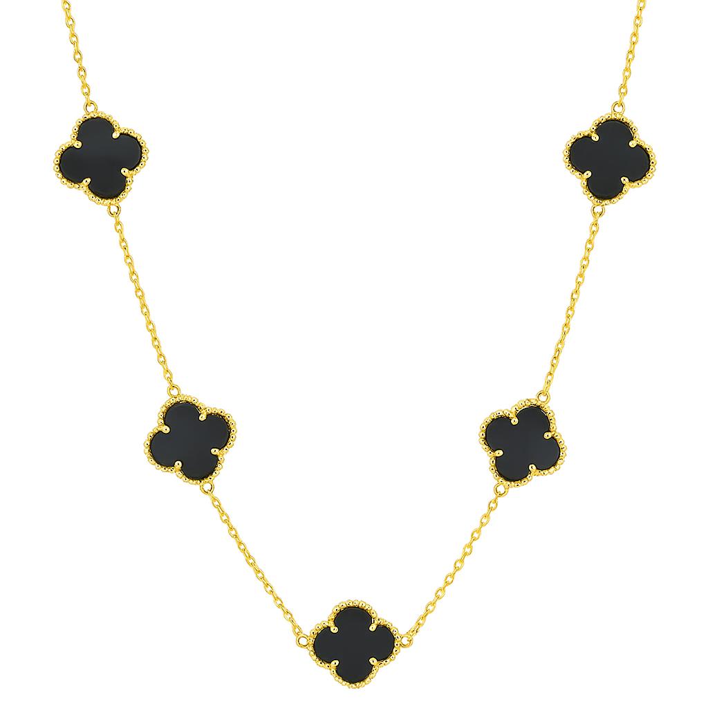 **گردنبند شیک و خاص** این گردنبند زیبا و خاص با طراحی منحصر به فرد، ترکیبی از طلای زرد با قطعات مشکی رنگ را به نمایش میگذارد. طرح آن شامل پنج گلبرگ شبیه به گل است که به صورت متناوب روی زنجیر قرار گرفتهاند و زیبایی خاصی به آن میبخشند. زنجیر ظریف و چشمنواز این گردنبند، حسی از لطافت و elegance را به همراه دارد. این گردنبند مناسب برای مجالس مختلف و استفاده روزمره است و میتواند به عنوان یک زیورآلات کلاسیک و شیک در کمد جواهرات هر زنی جایگاه ویژهای داشته باشد. با پوشیدن این گردنبند، شما نه تنها زیبایی را به خود هدیه میدهید، بلکه احساس خاص بودن و اعتماد به نفس را نیز تجربه خواهید کرد.